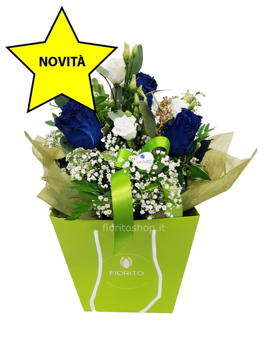 Il bouquet viene poi venduto confezionato nello shopper verde grande (23X18X25 cm).
