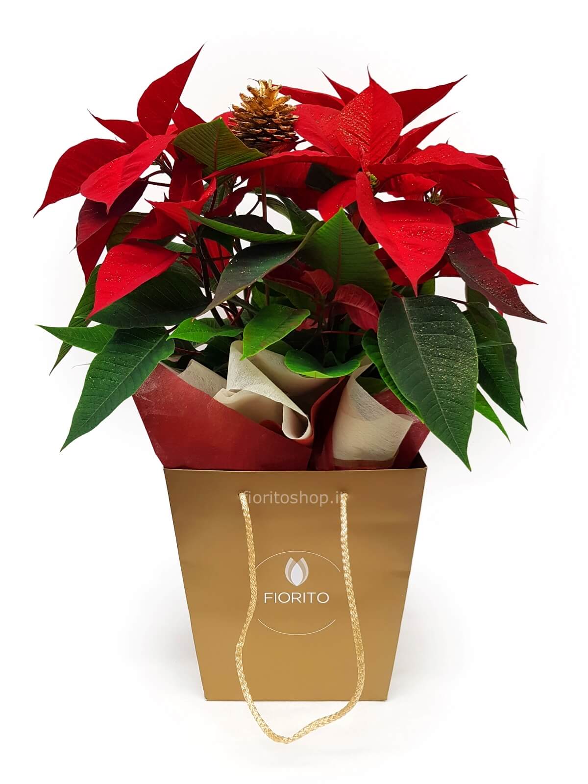 Stella di Natale altezza 60 cm confezionata con decori natalizi, e confezionata in uno shopper dorato.